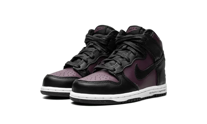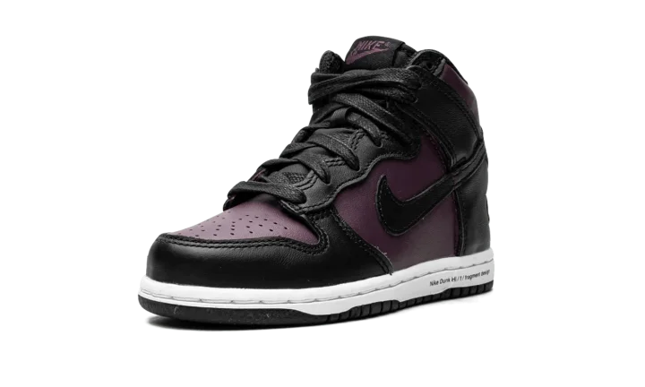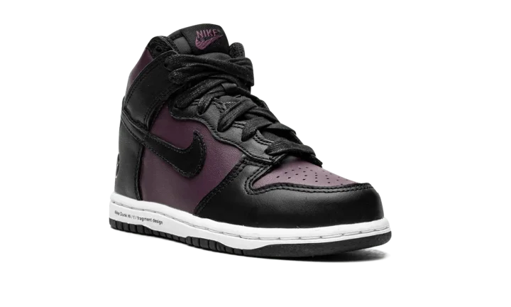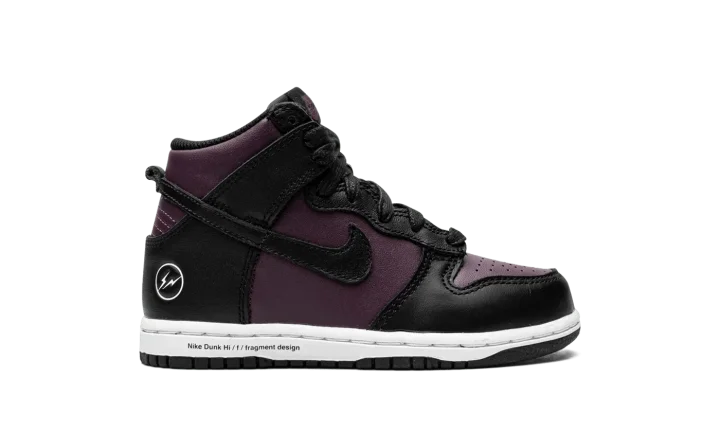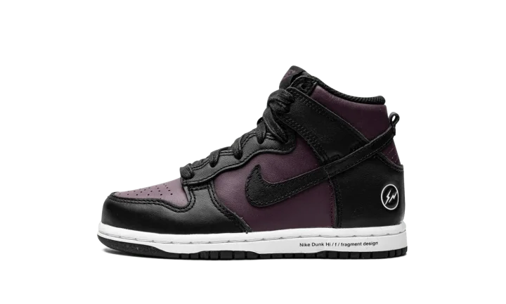 The Fragment x Nike Dunk High PS "Beijing 2021" is the preschool release of the modern interpretation of the collaboration between Hiroshi Fujiwara's streetwear brand and Nike on a Dunk colorway that shows love to one of the world's most fashionable cities. First appearing in 2010, the Fragment-designed "City Pack" honored New York, London, and Beijing with unique, mismatched colorways of the retro basketball and lifestyle shoe. Here, on the 2021 edition, Fragment and Nike do away with the "Beijing's" original mismatched color block, opting for a more traditional, two-tone Dunk look. Details include purple leather on the perforated toe and on the mid-panel and collar. Black leather overlays can be found on the forefoot, eyelets, collar, and Swoosh. Fragment's lightning bolt design appears on the lateral heel counter and industrial-style text is printed on the white midsole.