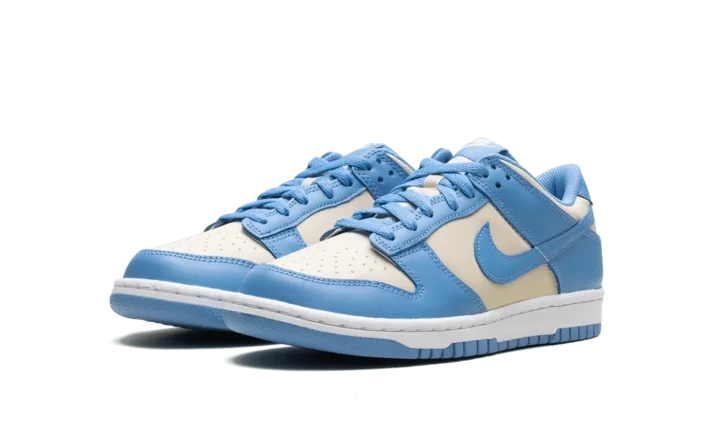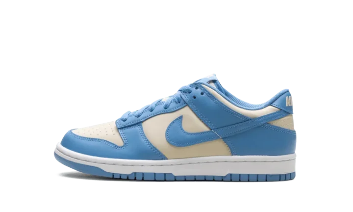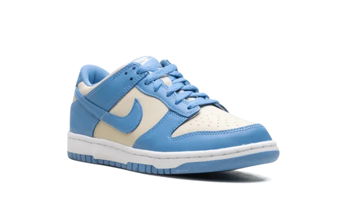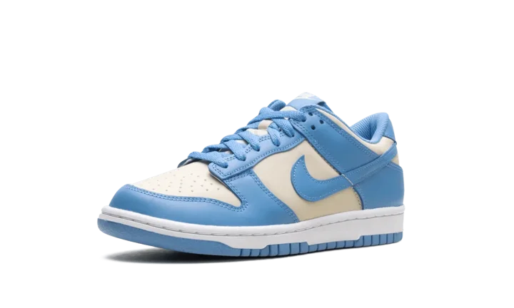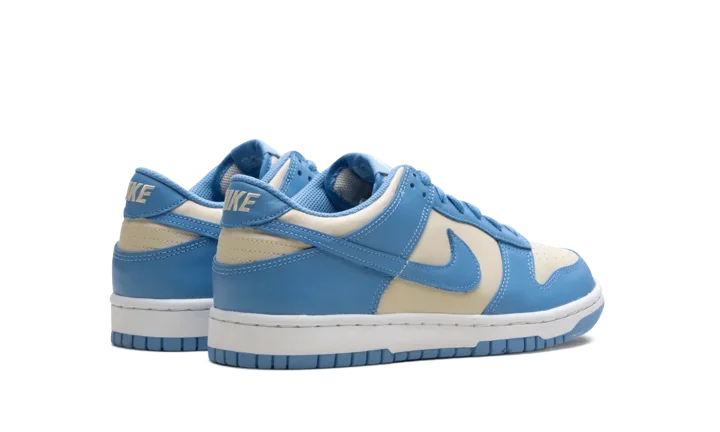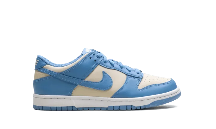Built for big kids, the Nike Dunk Low GS 'Blue Beyond Beach' features a smooth leather upper that combines a light grey base with Carolina blue overlays and a color-matched Swoosh.