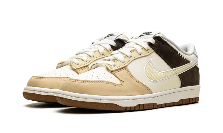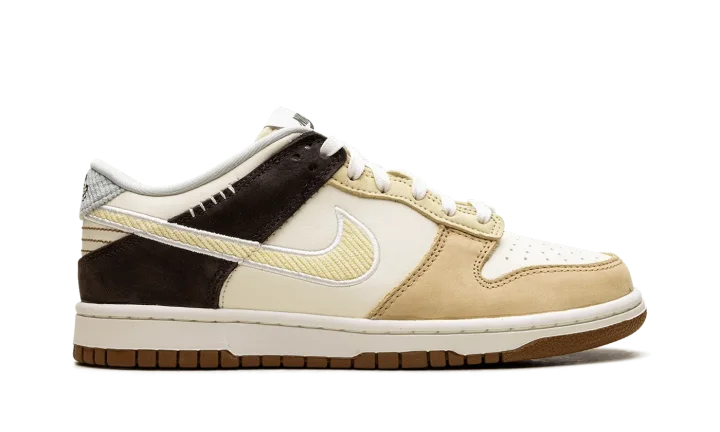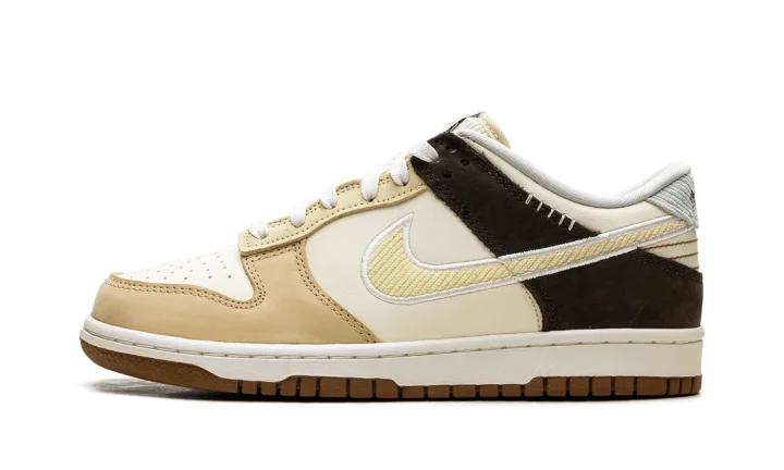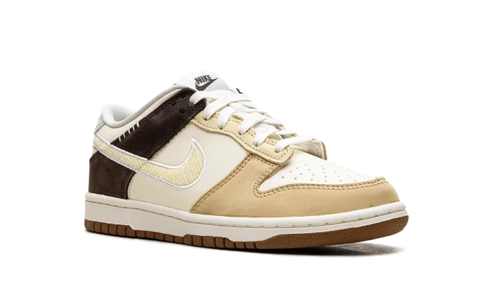 Made for big kids, the Nike Dunk Low GS 'Passing Notes Pack' features a leather upper in Coconut Milk, contrasted by a forefoot and heel overlay in beige and dark brown.