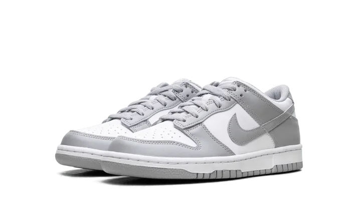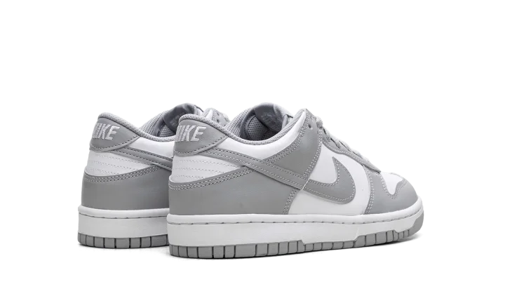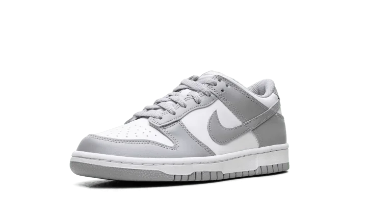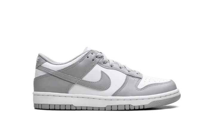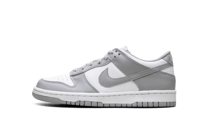 Made for big kids, the Nike Dunk Low GS 'Light Smoke Grey' features a clean white leather base with light grey overlays and a color-matched Swoosh.