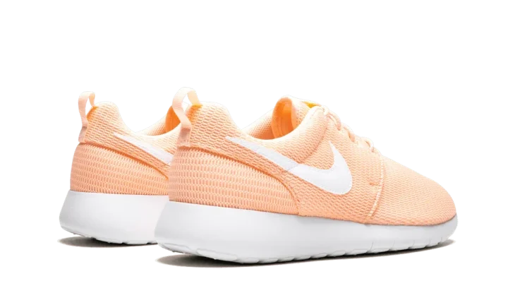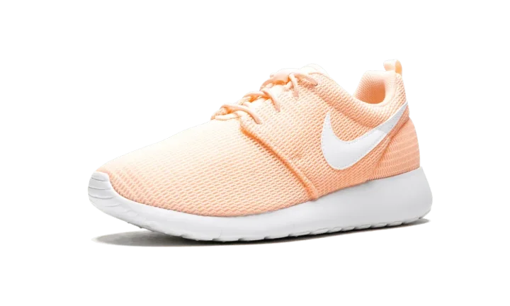 The Nike Roshe One kids' shoe is one of the most versatile sneakers your child can wear. To create an easy-to-wear sneaker, Nike designed a pair with simplistic features and zero embellishments. Superior ventilation comes from the ultra-lightweight mesh upper, and the full-length Phylon midsole offers all-day, everyday comfort. The Nike Roshe One upper, lacing system, and Swoosh are a creamsicle "Crimson Tint" orange and a white Swoosh and midsole complete the sneaker.