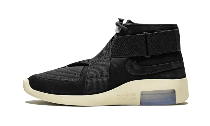 The Nike Air Fear of God Raid "Black" is the second colorway of the stylish silhouette by Jerry Lorenzo. Similar to Lorenzo's first Nike collaboration, the Air Fear of God 1, The Fear of God founder took a similar basketball-meets-high-fashion approach to the Fear of God Raid. Inspired by the classic Air Raid outdoor basketball shoe, the design includes large cross straps as well as special details like a toggle lace lock and a large 180 Air unit in the heel. This colorway features a tonal black premium nubuck and textile upper with a "Fossil" shade of cream white for the sculpted sole. The Air Fear of God Raid "Black" released on May 17, 2019.