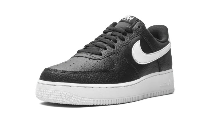 The Nike Air Force 1 Low "Black/White" is yet another versatile colorway of the enduring low-top sneaker. As straightforward as its nickname implies, the design of the "Black/White" "Uptown" is casual and refined. Ideal for daily wear, the model keeps a two-tone color block with supple black tumbled leather on the perforated toe and on the eyelets, mid-panel, collar, and heel. The high contrast styling of the white leather Swoosh detailing on either side of the shoe breaks up the neutral base. The white leather heel tab and black nylon tongue feature classic "Nike Air' insignia for a decidedly retro appearance. Tonal "Air" branding on the lateral side of the white rubber midsole completes the look.