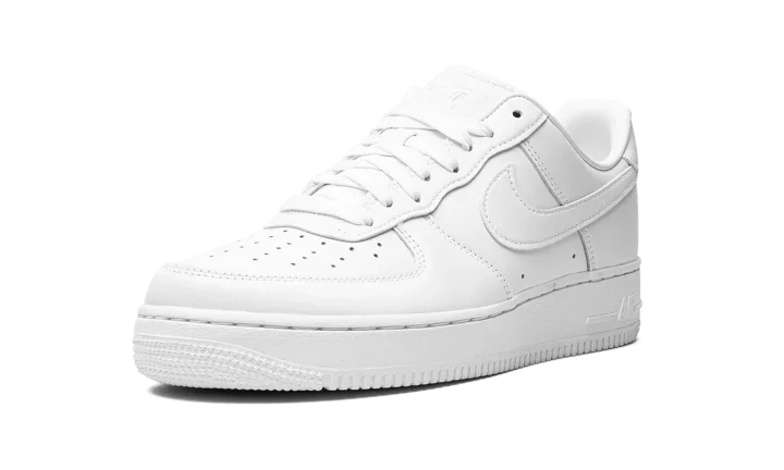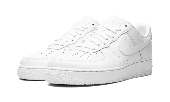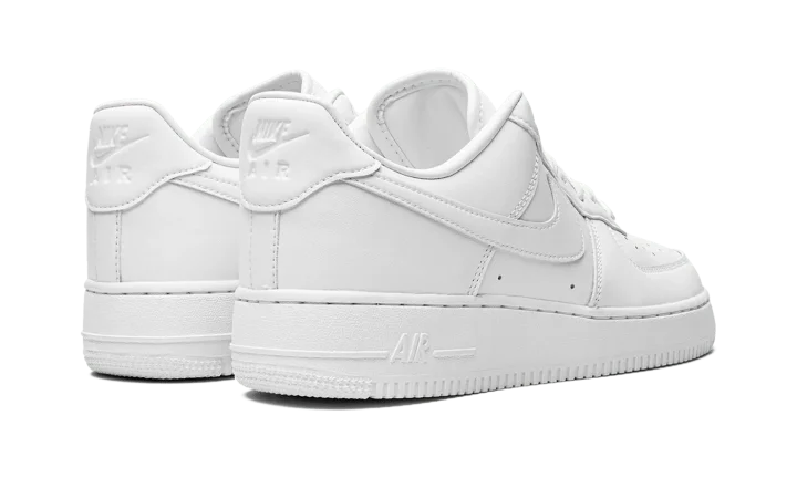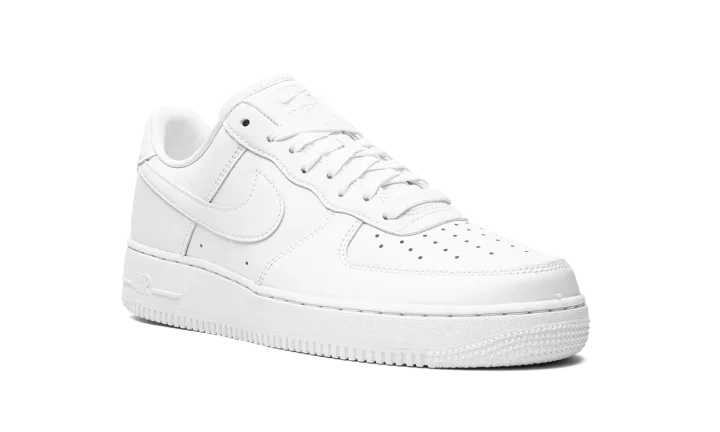 The Nike Air Force 1 Low "Fresh" is a unique version of the retro basketball shoe that hides creases. Based on the model's original and iconic "White on White" colorway, the "Fresh" Air Force 1 Low does away with the standard leather build for a textured leather construction that helps hide creases and allow for easier cleaning when necessary. A tonal leather Swoosh appears on either side while the tongue and heel feature debossed "Nike Air" branding. Nike further modified the shoe with a perforated sockliner that offers improved ventilation to the wearer's foot. The shoe retains the model's standard rubber midsole with "Air" branding on the lateral side, and standard outsole. Release date: July 15, 2022