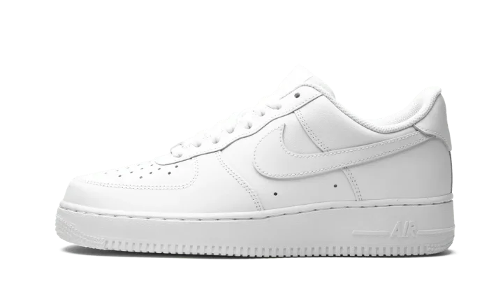 The Nike Air Force 1 Low "White on White" is one of the most popular and best-selling sneakers of all time. An essential for any collection, the all-white Air Force 1 Low is a versatile design that can be worn with virtually anything. The classic sneaker features a white leather upper with a mesh inner lining and solid white rubber outsole. A metallic silver "AF-1" lace dubrae completes the iconic look. The "triple white" Air Force 1 is a staple on the streets, and will continue to be in style from now until infinity.