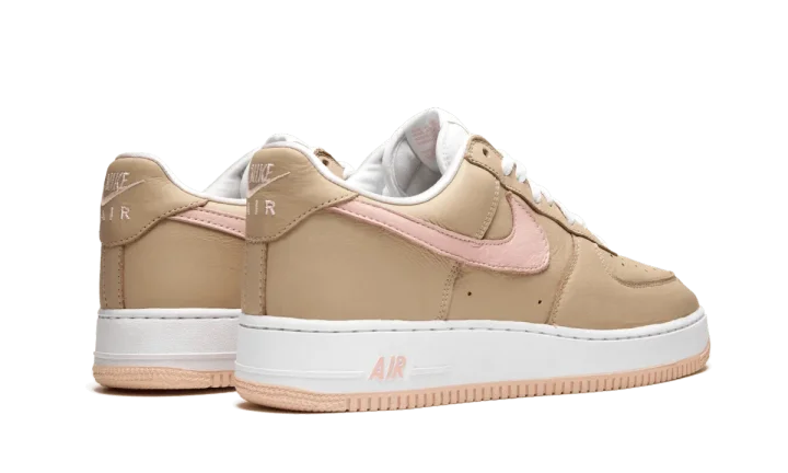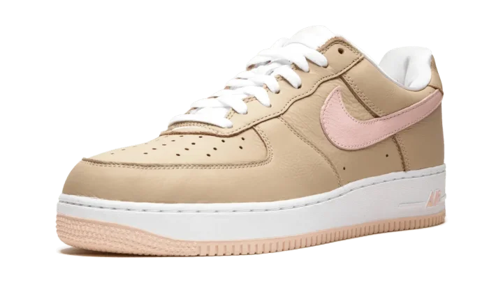 The 2024 version of the Nike Air Force 1 Low Premium 'Linen' revives the 2001 colorway that was part of Nike's Japanese-exclusive CO.JP series. These sneakers have a tan leather upper, accented with a soft pink Swoosh. The latter hue hits the tongue tag and back tab for a pastel kick. A rubber cupsole paired with white sidewalls anchors the look along with a pastel pink outsole.