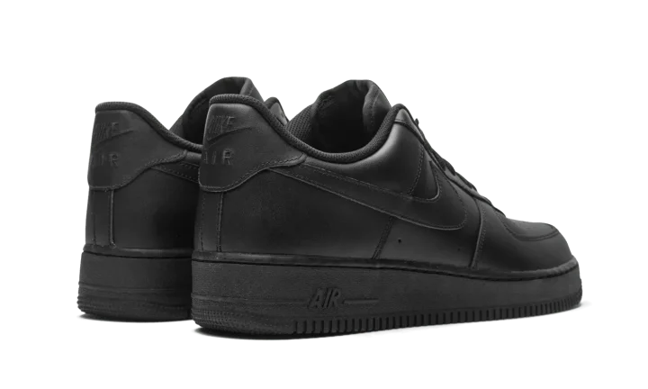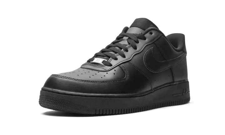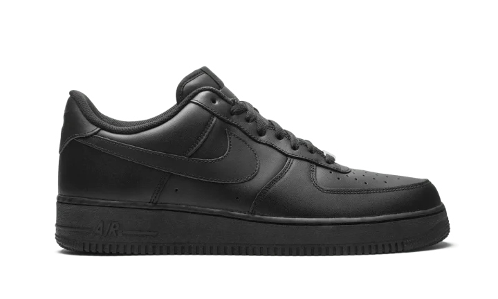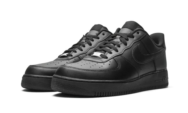 The Nike Air Force 1 Low "Triple Black" sports a monochromatic all-black look for unlimited versatility. First released in 1982, the Air Force 1 has transcended its performance origins to become simply one of Nike's premier lifestyle shoes, adored by opposing style disciples for its history, sleek silhouette, and comfort. Black leather appears on the perforated toe, mid-panel, and heel. Branding appears in the form of a tonal Swooshes on each side, "Nike Air" embroidery on the heel, and a black nylon "Nike Air Force 1" logo on the tongue. A silver "AF1" emblem on the laces provides a touch of contrast on the otherwise stealthy shoe. Black "Air" branding dots the heel of the midsole to complete the look.
