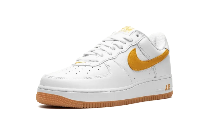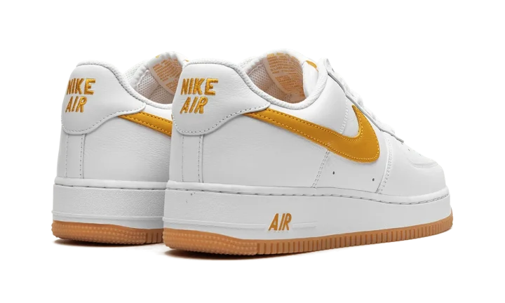 The Nike Air Force 1 Low Waterproof "University Gold" is a colorway of the iconic sneaker with a water-resistant leather construction. Good in inclement weather conditions, the Air Force 1 Low Waterproof "University Gold" features a waterproof white leather build with tonal leather overlays and a University Gold leather Swoosh. Additional University Gold accenting lands on the "Nike Air" embroidery on the heel and on the "Nike Air Force 1" detailing on the tongue tag. The golden hue also appears on the "Air" logo on the lateral side of the white rubber midsole and on the rubber outsole. Release date: May 19, 2023