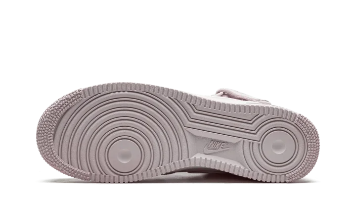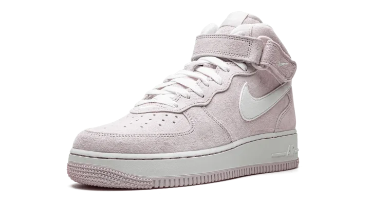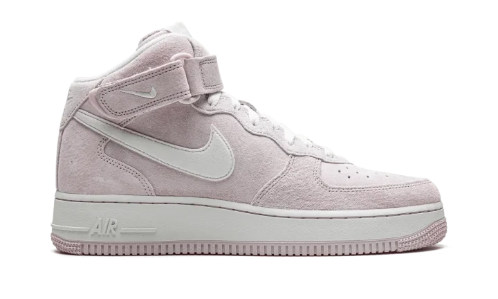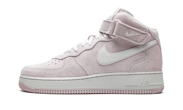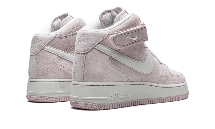 The Nike Air Force 1 Mid "Venice'' is a nearly all suede take on the classic basketball shoe. Released in 2022 during Nike's celebration of the 40th anniversary of Bruce Kilgore's Air Force 1, the "Venice" AF1 Mid was created with light spring/summer hues. This shoe features a light pink suede construction across the upper with the same shade of pink seen on the heel tabs and rubber outsoles. White accents provide contrast on the laces, inner lining, Swooshes, tongue, heel branding and midsoles.
