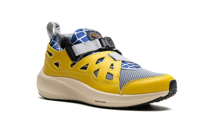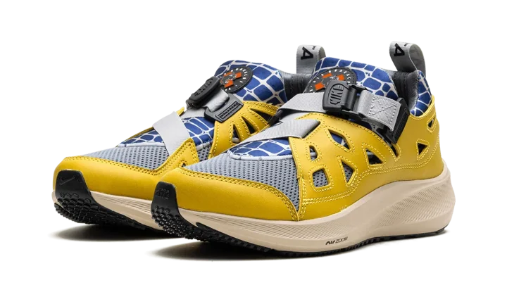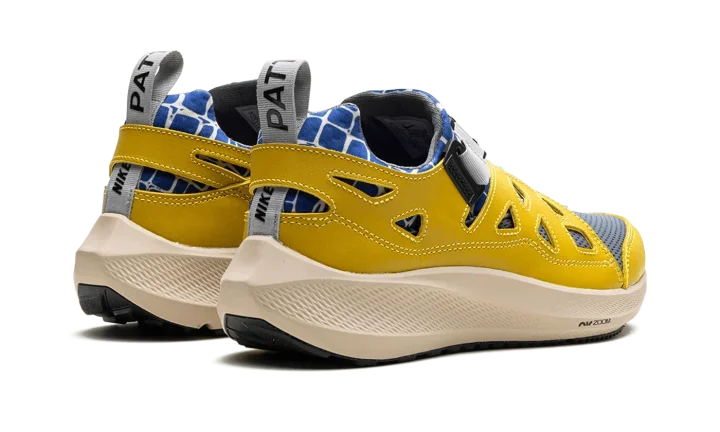 The Patta x Nike Air Huarache Plus "Saffron Quartz" is a collaboration by the Amsterdam-based brand and Nike on the hybrid sneaker. The Air Huarache Plus is a fusion silhouette that pairs the upper of the Air Huarache Plus with the tooling of the Nike Pegasus 40. The "Saffron Quartz" is one of several colorways of the model. Here, the style features a patterned neoprene base in blue and grey, with a grey mesh construction on the forefoot. A grey and black adjustable strap is incorporated into the eye-catching Saffron Quartz leather overlays for support. A rubberized "Patta" logo can be found on the tongue. Underfoot, the shoe's React foam midsole with Zoom Air cushioning in the forefoot and heel provides a comfortable ride for the wearer. Release date: April 26, 2024