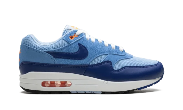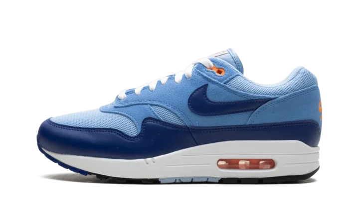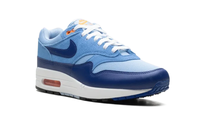 Meet the leader of the pack in a bold, retro colorway. The Nike Air Max 1 Essential 'Psychic Blue' revives the 1987 icon with a layered look built around contrasting blue hues and vibrant orange accents, creating a high-impact aesthetic.