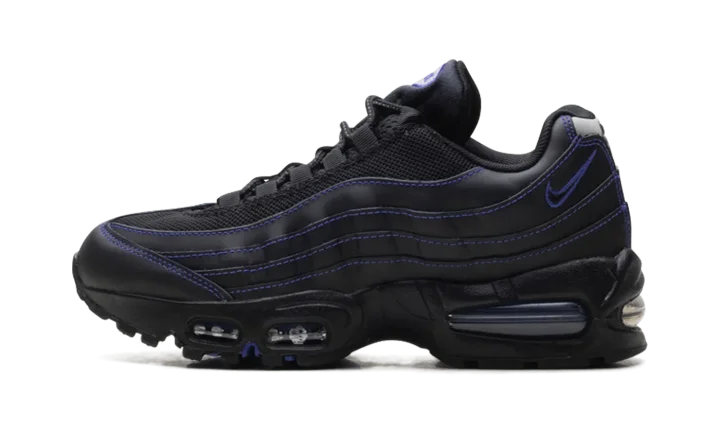 The style code IB7936-001 is for the Nike Air Max 95 OG Men's Shoes in the dark, vibrant, and highly-regarded 'Black/Persian Violet/Wolf Grey' colorway. This release often features the "Big Bubble" tooling, which reverts to a truer-to-original, larger visible Air unit size.