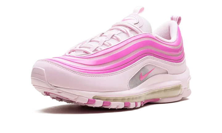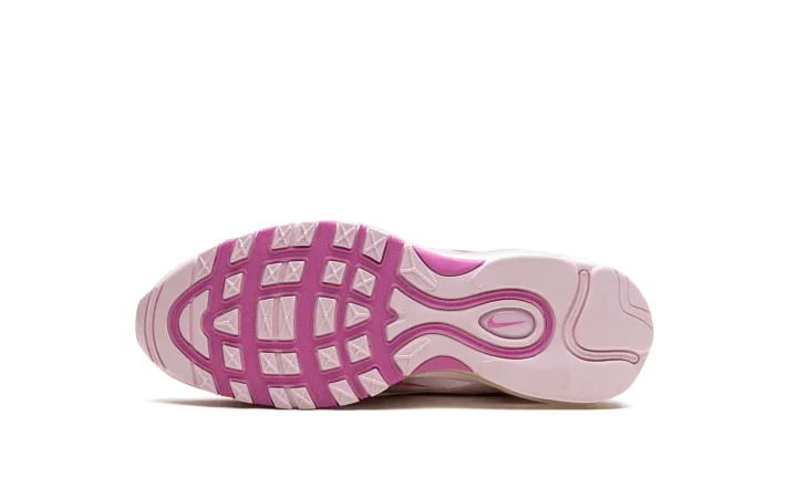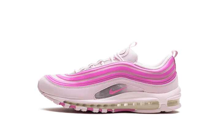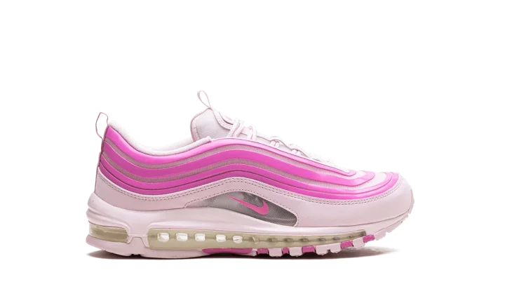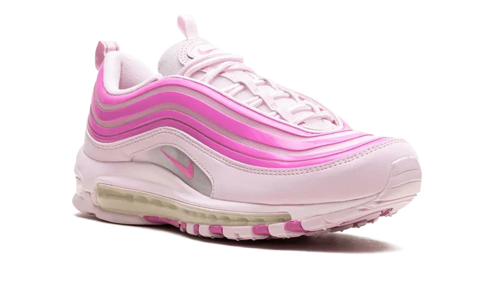 The Nike Air Max 97 "Pink Foam" is a colorway of the retro running shoe with an eye-catching pink design. From Nike's Spring 2024 collection, the Air Max 97 "Pink Foam" turns heads with a candy paint inspired design that includes Pink Foam wavy overlays, and more. Specifically, the shoe features a lighter shade of pink on its base, and pink Swoosh branding on either side in the middle of the mudguard. A full-length Air cushioning unit appears in the midsole, while more pink accenting appears on the rubber outsole.