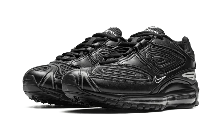 The Supreme x Nike Air Max 98 TL "Black" is one of four colorways of the retro running shoe by the New York based clothing brand. Supreme's seasonal collaboration with Nike continued in 2022 with the "World Famous" streetwear brand tapping the somewhat obscure Air Max 98 TL for a special collection of colorways. The "Black" treats the silhouette to a monochromatic black makeover that excels in versatility. The sneaker is complete with a black mesh base with tonal leather and TPU overlays. The Swoosh logo found on the lateral side is treated with a reflective finish that shines when exposed to light in the dark. Additional reflective detailing can be found on the "Supreme" branding on the heel and on the laces. A full-length visible Air cushioning unit appears in the midsole and completes the look. Release date: November 3, 2022