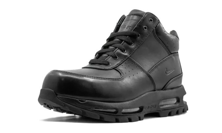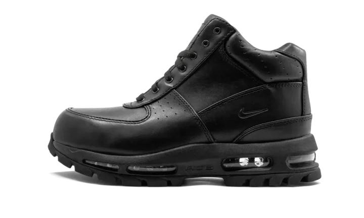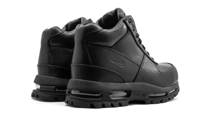 The Nike Air Max Goadome is the perfect footwear choice for the harsh winter months. Part of the Nike All Conditions Gear (ACG) sub-label, the hiking boot is composed of a waterproof black leather upper and sits atop a rugged rubber traction pattern designed with outdoor use in mind. Minimal branding can be spotted on each lateral side in the form of embossed mini Swooshes. A full-length Air Max unit delivers superior cushioning, while a gusseted tongue guarantees maximum protection from the elements.