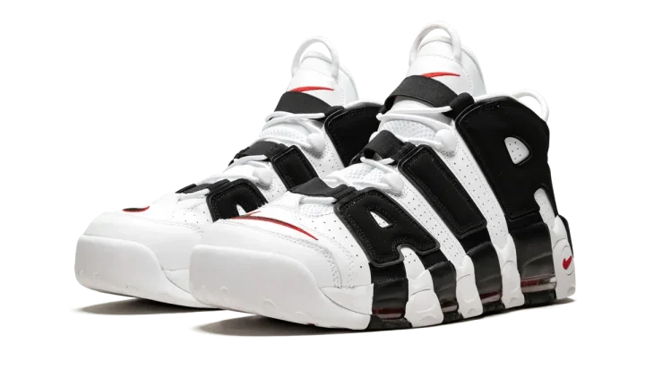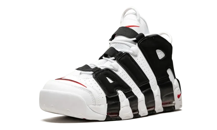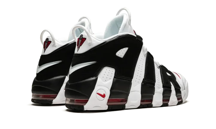 The Air More Uptempo's profile has risen in 2017 thanks to Nike releasing a combination of dope retros and lifestyle versions. This time, the classic basketball model known for its embellished "AIR" branding receives a colorway inspired by Scottie Pippen's Chicago Bulls days. This iteration features a white, black, and red colorway, with the "PIP" logo on each heel. (The "PIP" insignia was introduced on his first official signature model, the Air Pippen 1 in 1997.) The white leather upper is offset by bold black "AIR" branding to give this sneaker an eye-catching look. The visible air units on the midsole appear in red to complete the design.