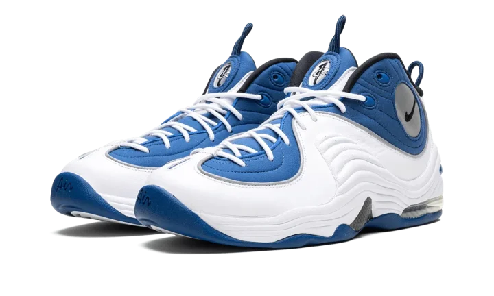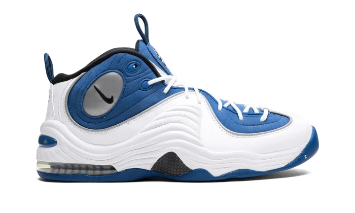 The Nike Air Penny 2 "Atlantic Blue" is an original colorway of Anfernee "Penny" Hardaway's second signature shoe with Nike that debuted in 1996 before it was re-released in 2015 and again in 2023. Worn by Penny with the Orlando Magic mostly during the NBA team's home games, the "Atlantic Blue" Air Penny 2 is a classic shoe from Nike's '90s basketball collection. The modern incarnation of the "Atlantic Blue" is similar to the original version from '96. The shoe features a white leather upper with Atlantic Blue accents. A black Swoosh is seen on the grey "bubble" on the collar and Penny's signature "1-Cent" branding appears on the tongue and heel. Nike's Zoom Air cushioning technology is embedded in the forefoot of the midsole and an Air unit is encapsulated within the heel. Release date: November 25, 2023