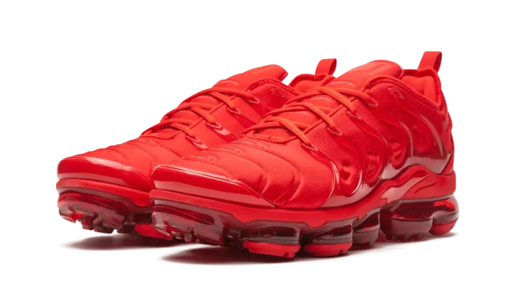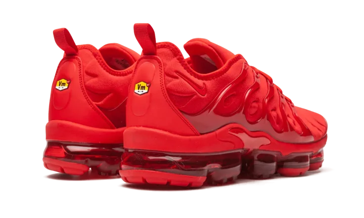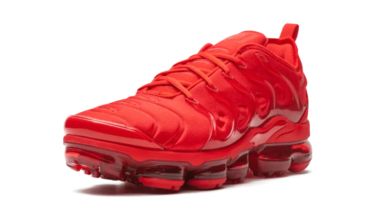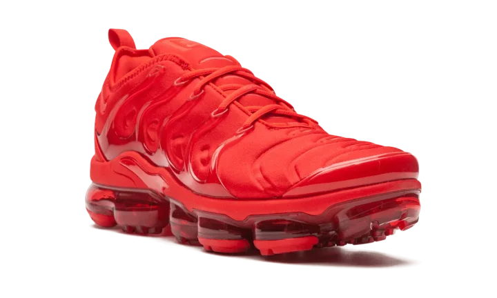 The Nike Air VaporMax Plus "Triple Red" offers fans of bold sneakers the ideal pop of color to level up casual ensembles. The modern Nike shoe showcases a hybrid of Nike technology with the floating cage, padded upper and heel logo of the 1998 Air Max Plus and the revolutionary VaporMax Air technology. This version of the Nike Air VaporMax Plus sneaker makes a monochromatic statement with just one shade of red draped over its entirety.