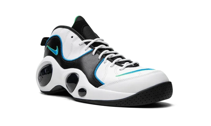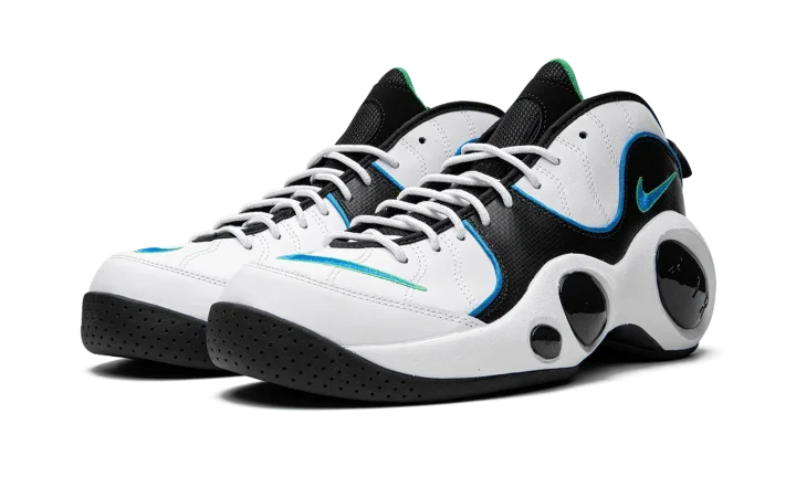 The Nike Zoom Flight '95 "White/Photo Blue" is the first-ever re-release of this original colorway of the celebrated basketball shoe. The Zoom Flight '95 received a boost in popularity in 2022 when Supreme collaborated with Nike on the shoe in three bandana-inspired colorways. The vintage hoops shoe also returned in its original black and white colorway, as well as this "White/Photo Blue" look that was once worn by Jason Kidd. The upper features a white leather construction with contrasting black mesh overlays. A large Photo Blue Swoosh is embroidered on the toe and a smaller Swoosh appears on the collar. Classic "Flight" branding is located on the black nylon pull tab on the heel. The Zoom Flight '95's signature "bug eye" inserts appear in black on the white foam midsole and give the shoe a retro-yet-futuristic appearance. Release date: September 17, 2022