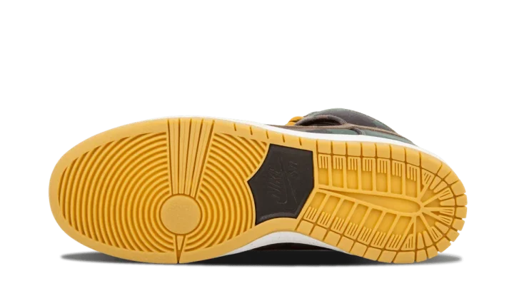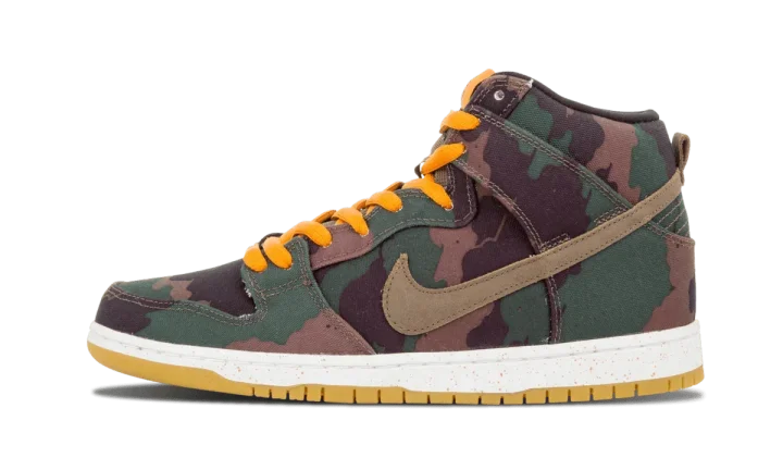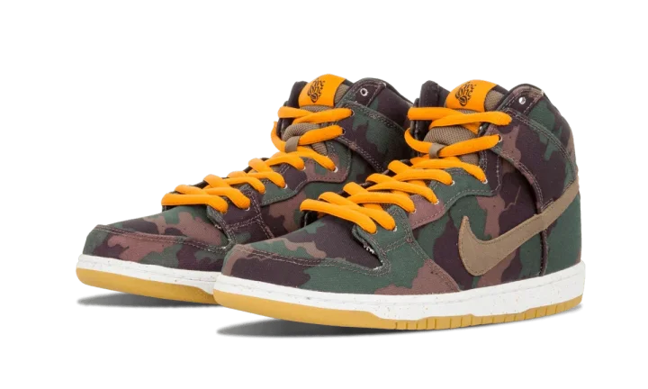 A special collaborative release by Berkeley, California's 510 skate shop, this rugged look for the Dunk High features a camouflage upper with hunter orange accents completed by a gum rubber outsole.