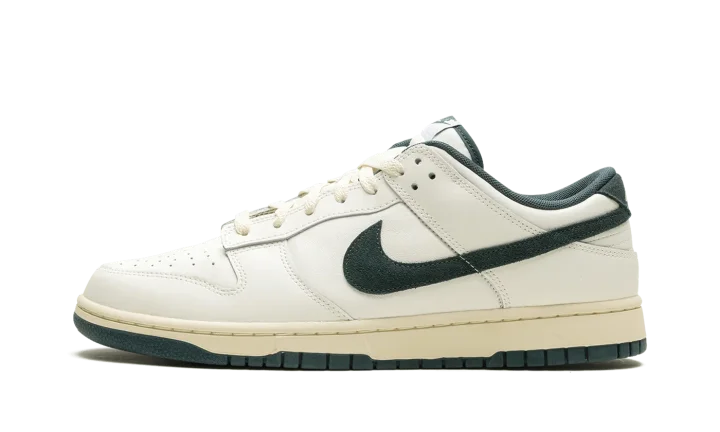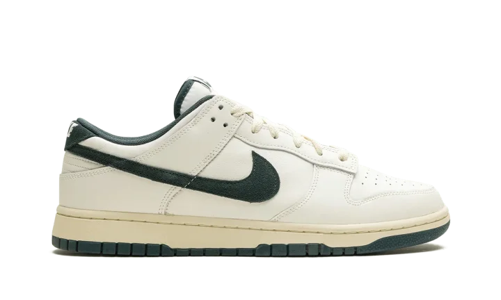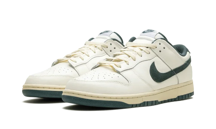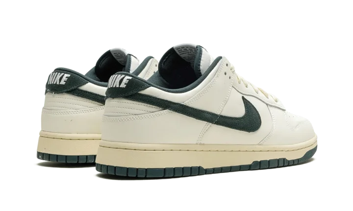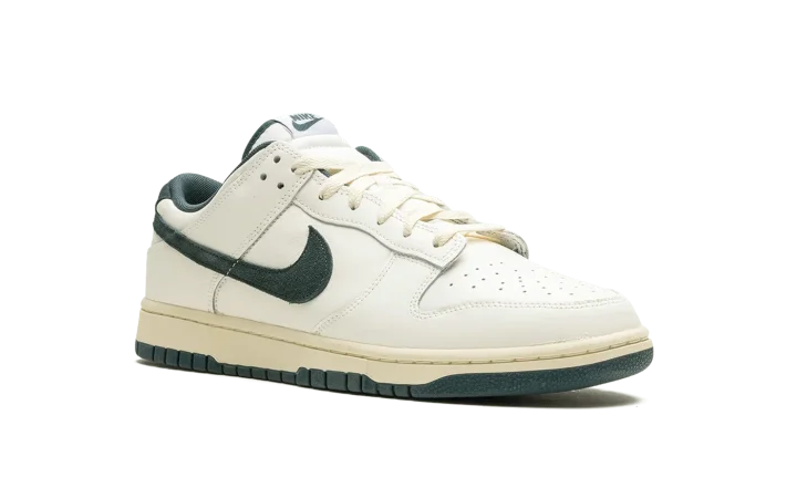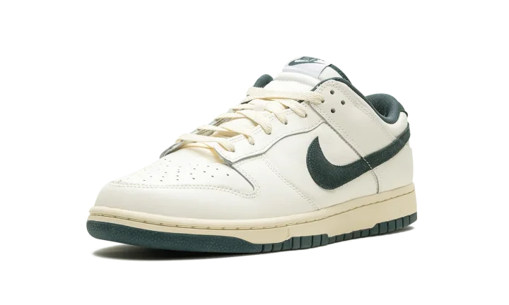 The Nike Dunk Low "Athletic Department - Deep Jungle" is a colorway of the retro basketball sneaker with a vintage college sports aesthetic. The upper features a Sail leather construction with a Deep Jungle-colored suede Swoosh that matches the appearance of the heel tab with "Nike" embroidery. Classic "Nike" detailing can be seen on the tongue. More Deep Jungle accenting includes a green lining, and green rubber outsole underneath the rubber midsole. A special "Nike Athletic Department" logo is found on each insole. Release date: October 1, 2023