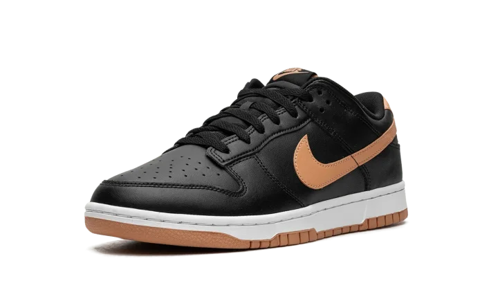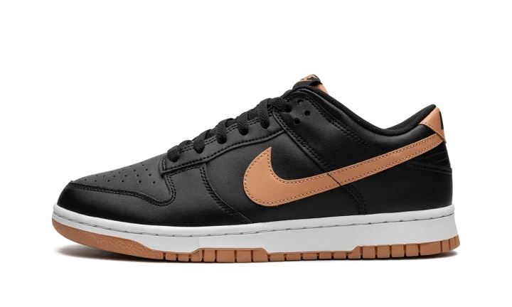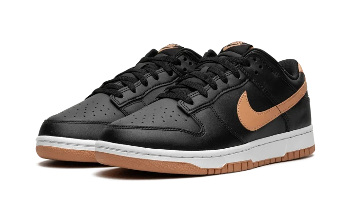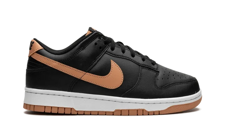 The Nike Dunk Low "Black/Amber Brown" is a versatile colorway of the classic basketball shoe with a simple and stylish look. A decidedly fall-inspired vibe, the Dunk Low "Black/Amber Brown" features a black leather upper with tonal leather overlays. An Amber Brown leather Swoosh logo appears on the mid-panel while classic "Nike" branding is embroidered on the heel. More Swoosh and "Nike" logos are seen on the tongue tag. Underfoot, a white midsole and Amber Brown-colored outsole complete the clean colorway. Release date: November 2, 2023