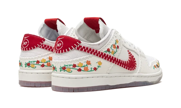 The Nike SB Dunk Low Decon N7 "Opti Yellow" is a special colorway of the popular skate shoe inspired by and in support of Native American and Indigenous youth in the United States. The SB Dunk Low Decon N7 "Opti Yellow" features a unique combination of materials, all of which are inspired by Native American culture and textiles. The N7 Dunk features a Sail canvas upper with tonal leather overlays. The colorway's signature details include floral motifs on the toe cap, collar, and heel overlays. A red Swoosh with white contrast stitching is seen on the side. Red "Nike SB" branding is found on the tongue tag while an "N7" logo is paired with a Swoosh on the red leather heel tab. Release date: June 15, 2023