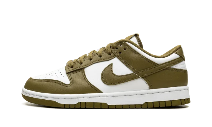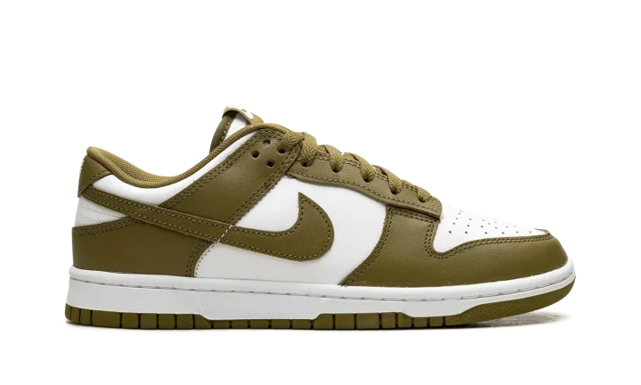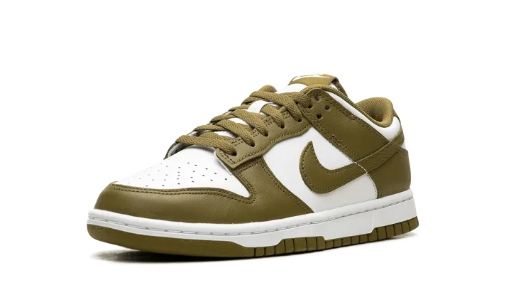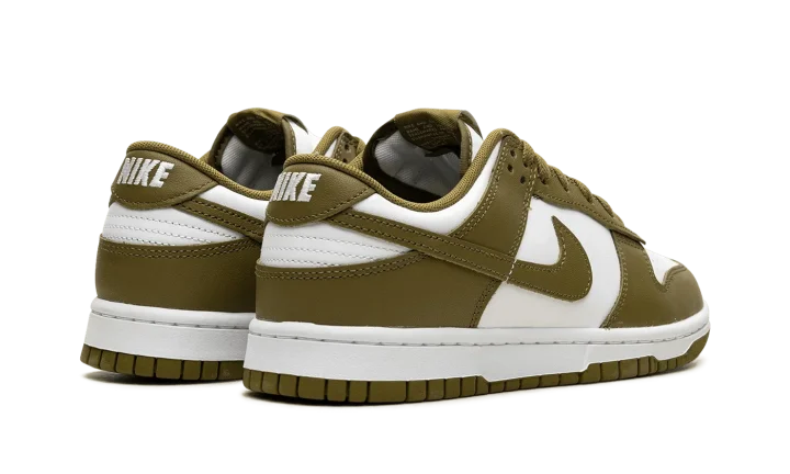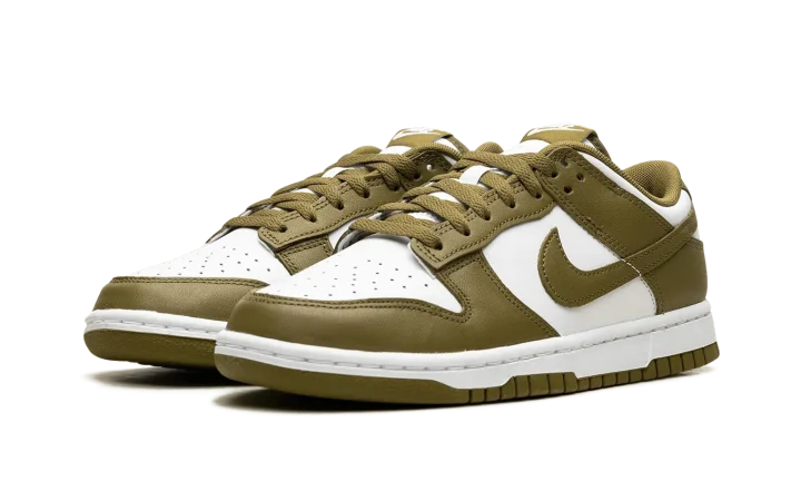 The Nike Dunk Low "Pacific Moss" is a colorway of the retro basketball shoe with earth tone details. Designed for everyday wear, the "Pacific Moss" Dunk Low features a white leather base and Pacific Moss leather overlays and Swoosh branding. A white "Nike" logo is embroidered on the heel and printed on the Pacific Moss-colored nylon tongue tag above a white Swoosh. Underfoot, a white midsole and Pacific Moss outsole complete the look. Release date: Spring 2024