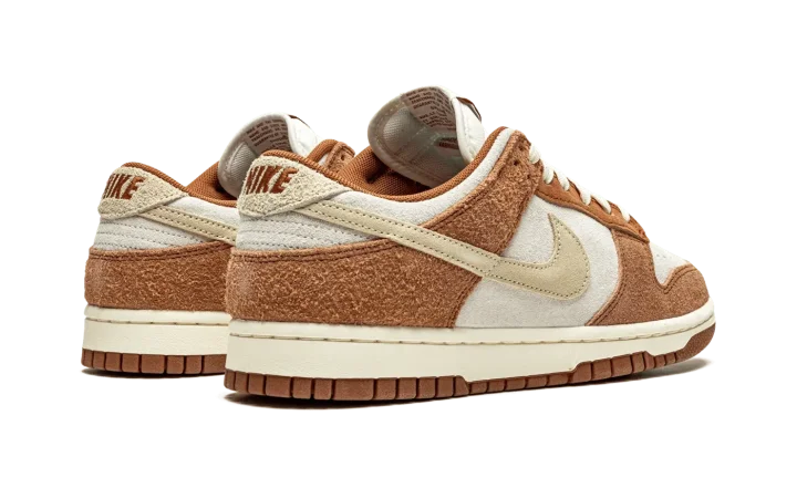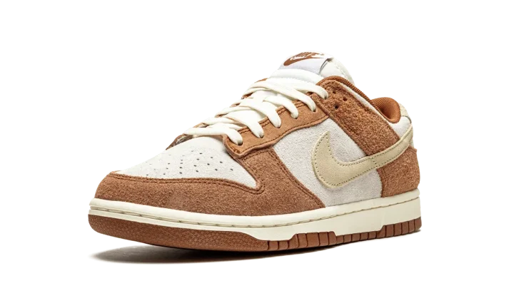 The Nike Dunk Low PRM "Medium Curry" dressed the former performance basketball and current lifestyle shoe in an autumnal colorway. One of the many strengths of the Dunk is its ability to combine different colors and textures together in an appealing way, and the "Medium Curry" is no exception to the sentiment. Hairy brown suede panels on the forefoot, eyelets, collar, and heel stand out against the white leather base. A shade of cream called "Fossil" is applied to the suede Swoosh and the heel tab with brown "Nike" embroidery. Brown "Nike" branding resides on the tongue tag and a white midsole and brown outsole put the finishing touches on yet another ultra fresh Nike Dunk.