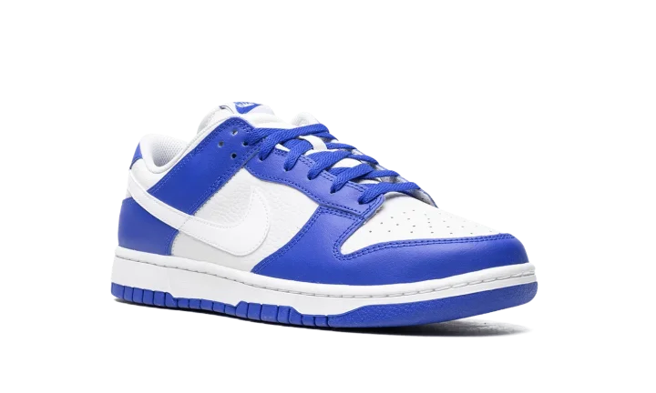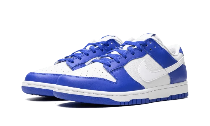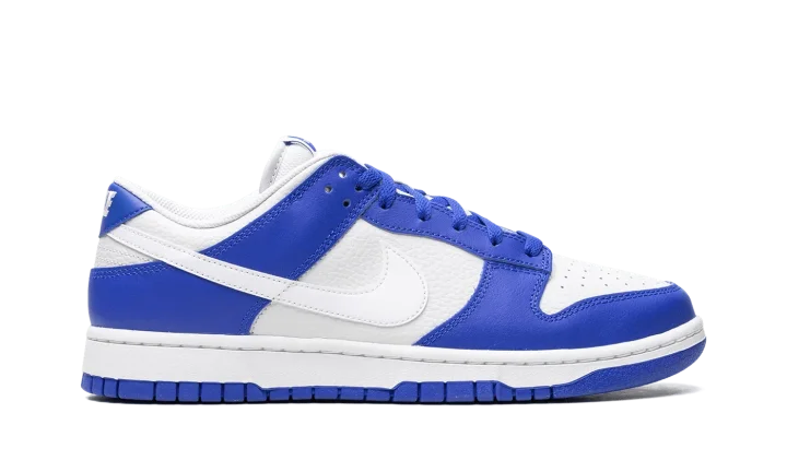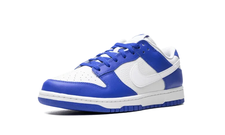 The Nike Dunk Low "Racer Blue/Photon Dust" is a colorway of the retro basketball shoe with a two-tone, blue-and-white color scheme. The Dunk Low in "Racer Blue/Photon Dust" features a white tumbled leather base with Racer Blue-colored leather overlays and Swoosh branding. White "Nike" detailing is embroidered on the heel and blue "Nike" and Swoosh logos are found on the tongue tag. Underfoot, the look is rounded into form with a white rubber midsole and blue rubber outsole. Release date: April 1, 2023