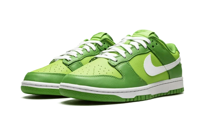 The Nike Dunk Low "Chlorophyll" is a bright take on the classic basketball shoe turned casual favorite. This sneaker features a Vivid Green leather base paired with a darker shade of green leather that Nike has dubbed Chlorophyll. White provides contrast on the laces, side Swooshes, and rubber midsole. A perforated toe box offers breathability. Release date: July 8, 2022