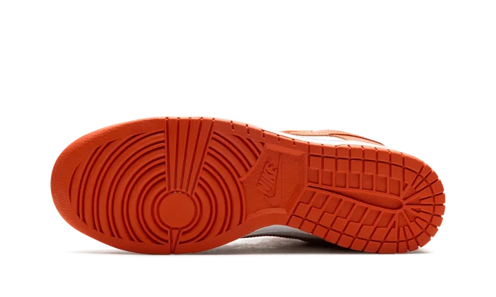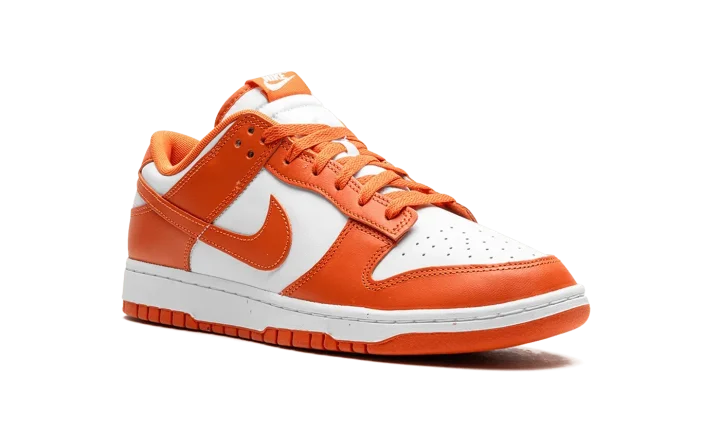 This Nike Dunk Low stays true to the iconic color blocking that the silhouette is known for when one main color is featured. This shoe has a clean white leather upper with perforations on the toe box for enhanced breathability. Cosmic clay then takes over and flows from the toe cap and forefoot, to the eyelet, and then wraps down around the heel.