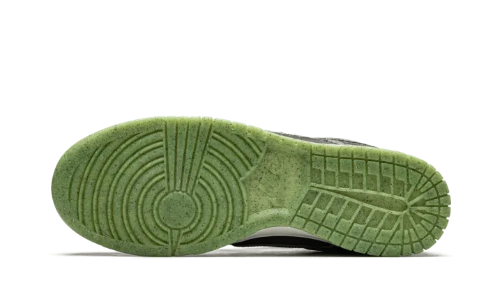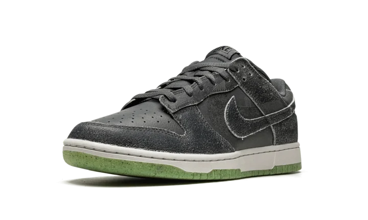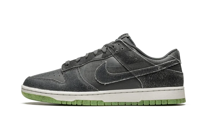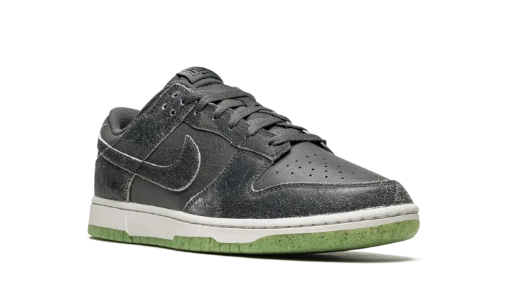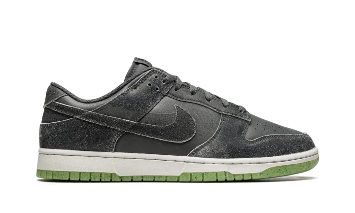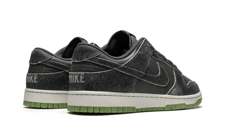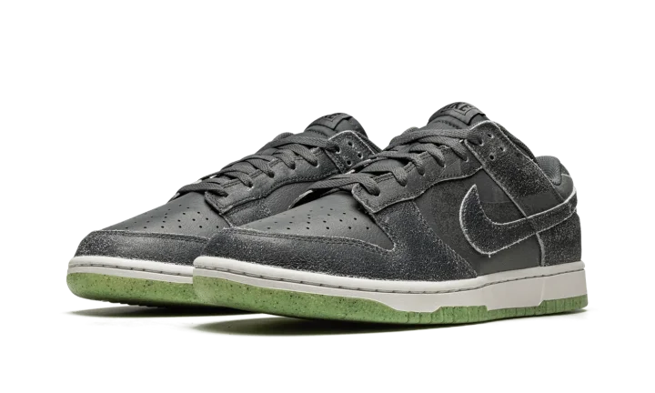 The Nike Dunk Low "Halloween 2022" is a colorway of the retro basketball shoe that celebrates the spooky holiday. As one could imagine, Halloween has proven to be a popular source of inspiration for sneaker colorways over the years, and that is very much evident on this Dunk Low. The shoe features an Iron Grey leather base with tonal cracked leather overlays and Swoosh branding. An oversized tonal Swoosh is layered over the grey suede logo giving the branding a shadow-like effect. Grey "Nike" detailing appears on the back of the shoe and on the tongue tag. The green Nike Grind outsole is made from recycled materials. Release date: October 27, 2022