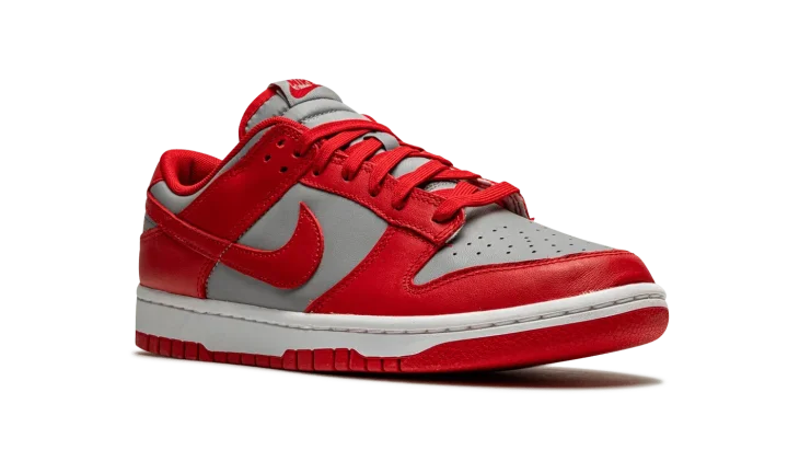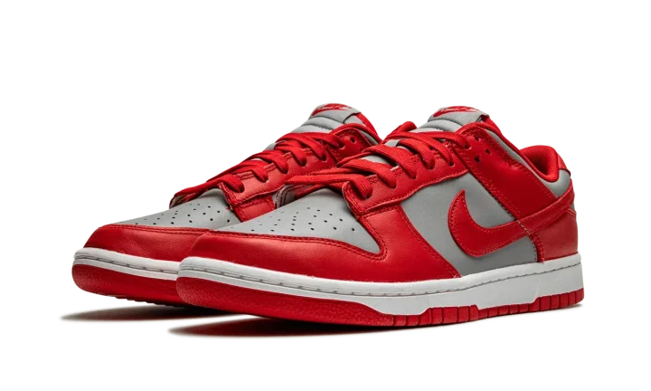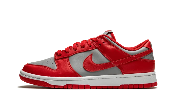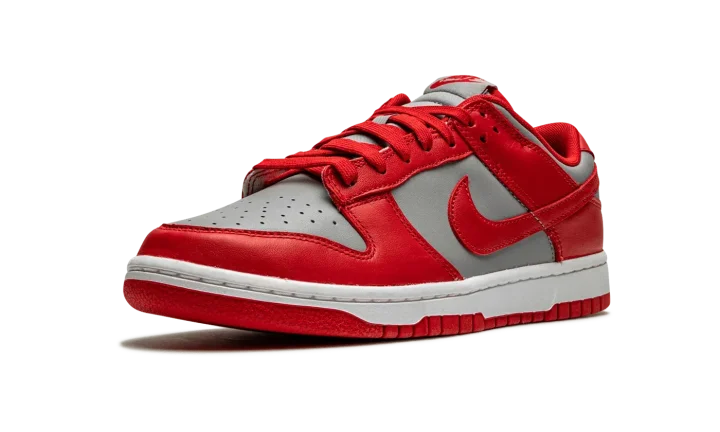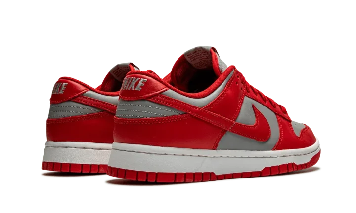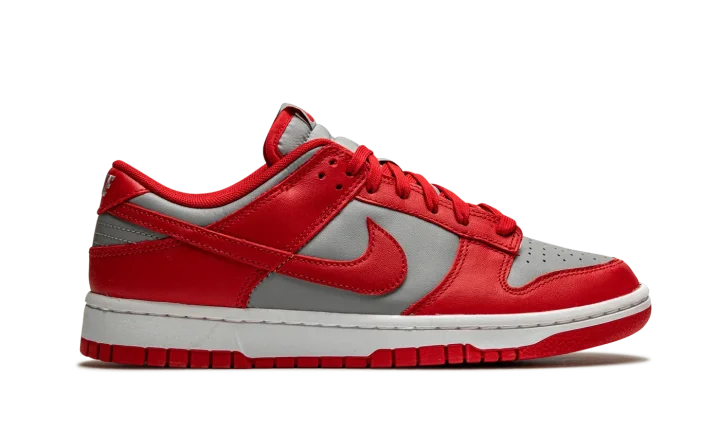 The Nike Dunk Low "UNLV" is an original colorway of the former performance basketball shoe that was included in 1985's "Be True to Your School Pack." Returning in January 2021, the "UNLV" references the makeup of the Dunk made exclusively for the UNLV Runnin' Rebels basketball team during the model's initial product cycle in the '80s. As for this contemporary re-release, Nike keeps the original look intact, and the results are clearly favorable. Varsity Red leather overlays can be found on the forefoot, toe cap, eyelets, and heel. The Las Vegas-area school's Vast Grey hue appears on the perforated toe, mid-panel, collar, and heel. Additional red accenting is located on the leather Swoosh branding that appears on either side and on the heel counter and shoe laces. Grey "Nike" embroidery is stitched onto the back of the shoe. A thin nylon tongue displays classic Nike Air branding to complete the look. Release date: January 14, 2021.