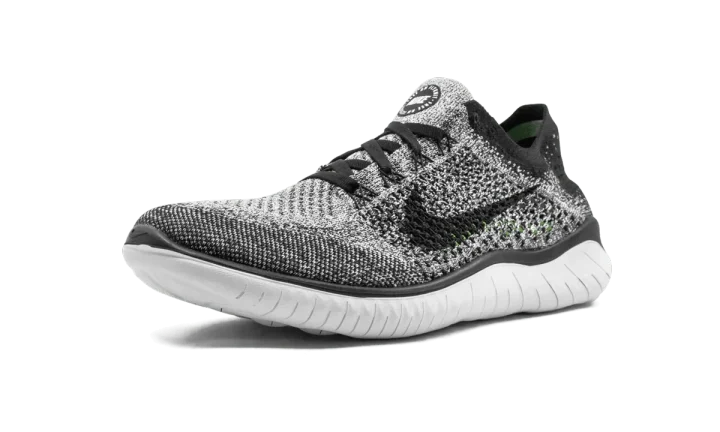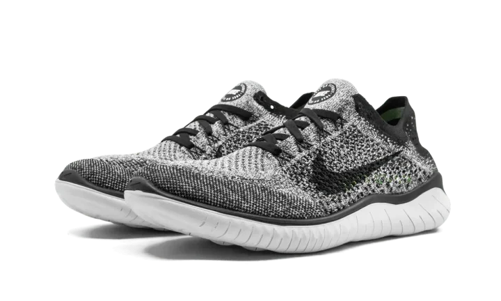 The Nike Free Run Flyknit 2018 is a low-top running sneaker constructed with a lightweight breathable Flyknit upper as its primary design function. Both durable and supportive, the Flyknit upper features a speckled black-and-white color scheme woven into its fabric. A solid black Swoosh covers the mid-panel with black laces and Nike branding on the tongue offering a contrasting touch to the vibrant upper. Thanks to its sock-like constructed upper, the ankle collar offers the wearer a snug fit to ensure stability during every stride. Rounding out the look of the low-top design is a responsive white Phylon foam sole for advanced all-day comfort.