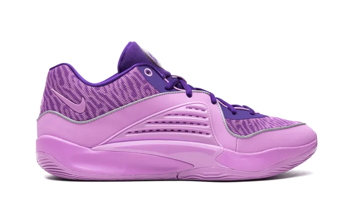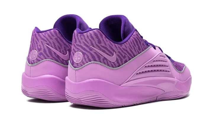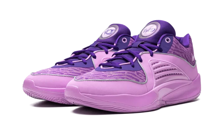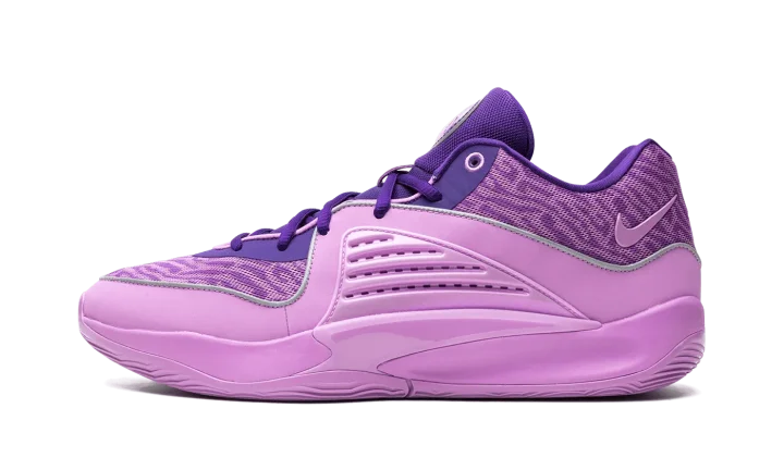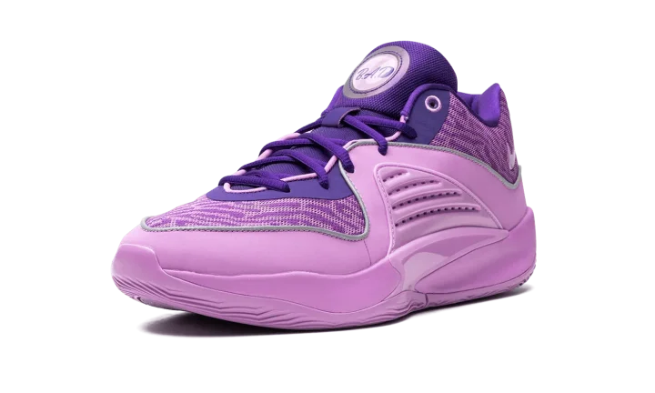 The Nike KD 16 "B.A.D" is a colorway of Kevin Durant's sixteenth signature shoe with Nike Basketball that honors his late grandmother, Barbara A. Davis. Debuted on the Nike KD 15, the "B.A.D" colorway theme returns on the KD 16 as the basketball star pays tribute to the life and legacy of his late grandmother. The upper features a Field Purple and Rush Fuchsia color scheme. The right tongue has Durant's signature branding with Nike while a "B.A.D" logo appears on the left tongue. Another "B.A.D" logo can be seen on the insole. Reflective detailing can be found throughout the shoe. Release date: December 2023