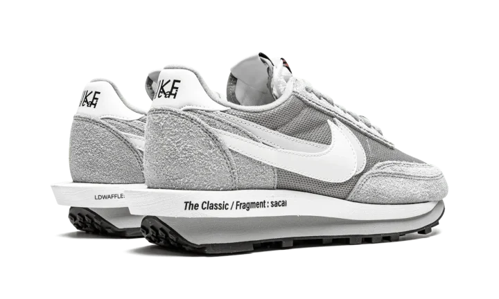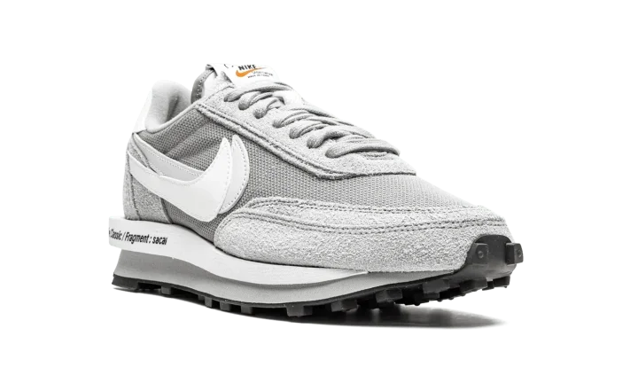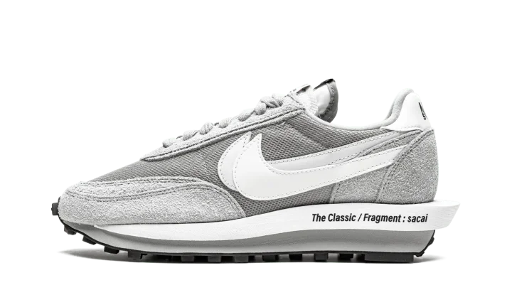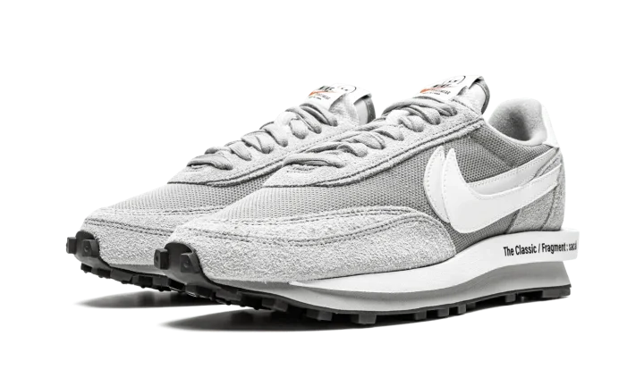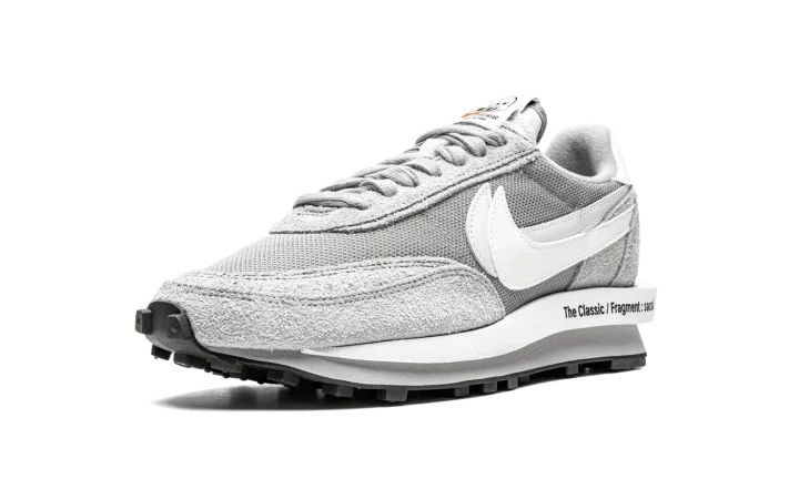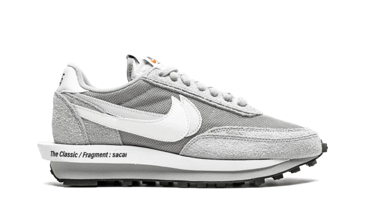 x Sacai x Fragments LDWaffle sneakers from NIKE featuring grey, suede, signature Swoosh logo detail, slogan print to the side, logo patch at the tongue, branded insole, branded heel counter, round toe, front lace-up fastening and ridged rubber sole. These styles are supplied by a premium sneaker marketplace. Stocking only the most sought-after footwear, they source and curate some of the most hard to find sneakers from around the world..