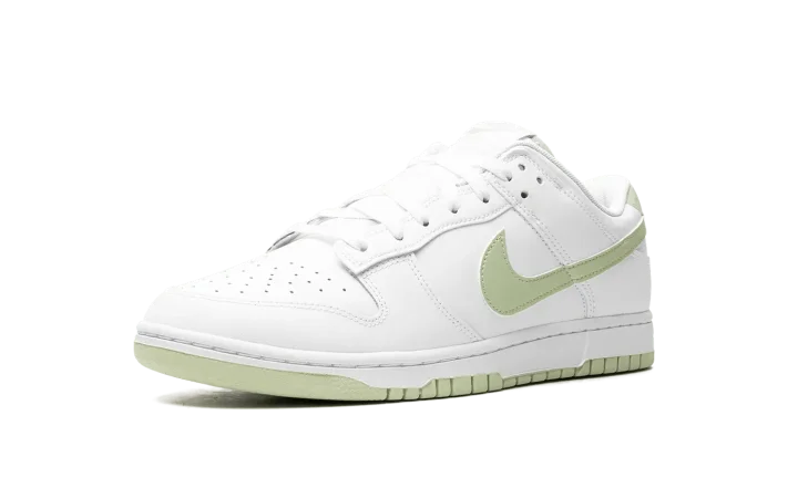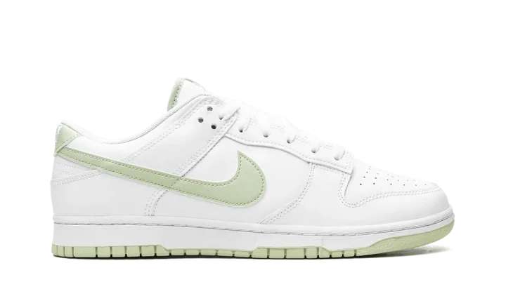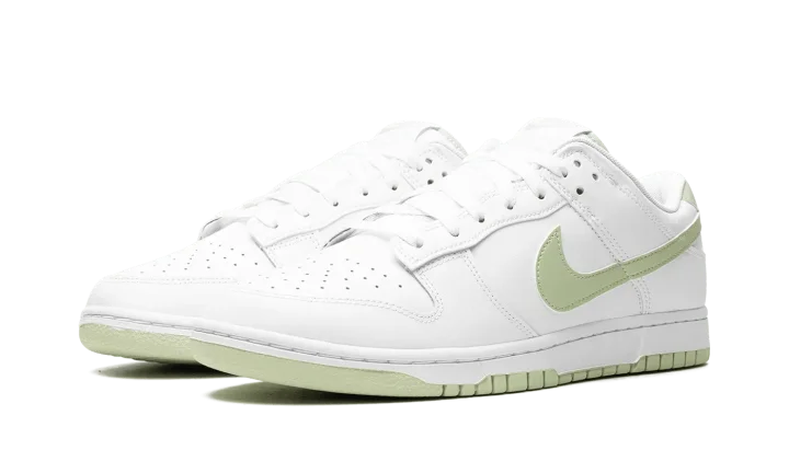 The Nike Dunk Low "Honeydew" is a classic-looking, two-tone colorway of the retro sneaker. The "Honeydew" features a white leather upper with tonal leather overlays on the toe, forefoot, eyelets, collar, and heel. A Honeydew-colored leather Swoosh appears on the sides. More "Honeydew" accenting can be found on the "Nike" logo on the heel and on the tongue tag. A white rubber midsole and green outsole complete the look. Release date: October 1, 2023
