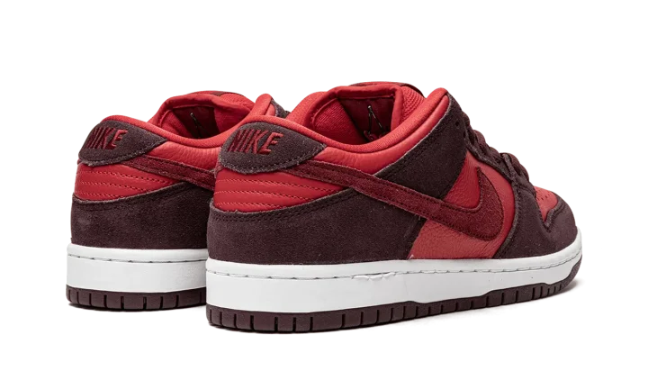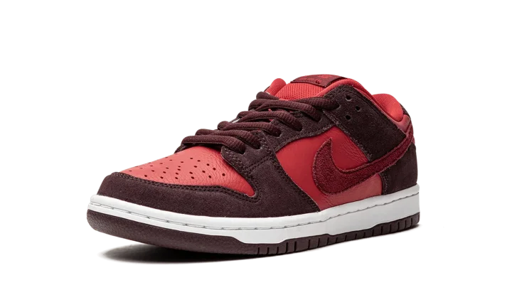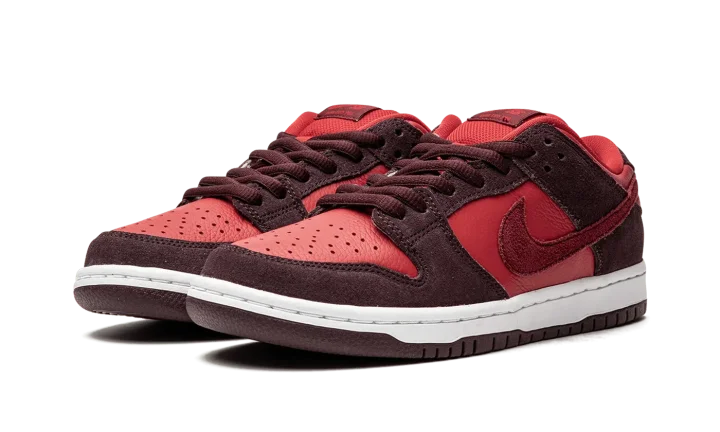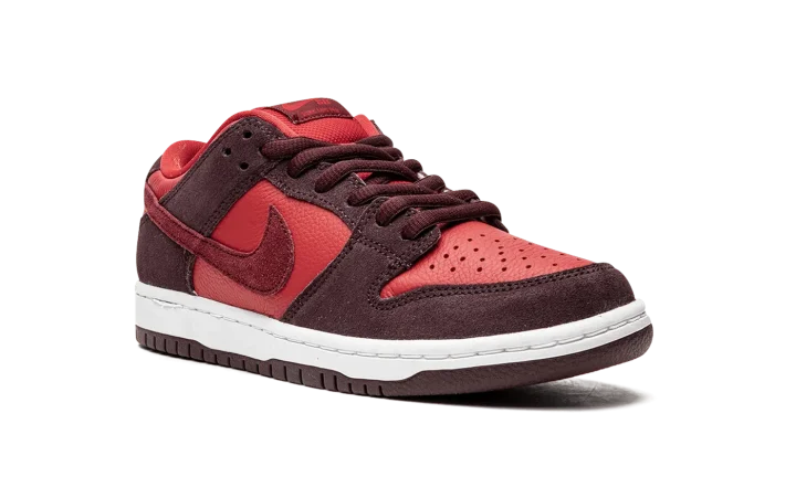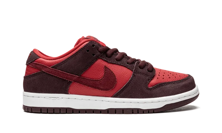 The Nike SB Dunk Low "Cherry" is a colorway from the "Fruity Pack" that was released in July 2022. One of several SB Dunks from said collection, the "Cherry" features a tonal red design inspired by, yes, cherries. A combination of Team Red leather on the base, and Crimson Crush suede on the overlays gives the shoe a unique look. The Swoosh logo on either side is designed in a berry red hue, as is the "Nike" embroidery on the heel, and the "Nike SB Dunk" branding on the tongue tag. A cherry graphic is found on the underside of the tongue. A Zoom Air cushioning unit is dropped into the heel of the midsole to help with impact absorption while skating or walking. Release date: July 9, 2022