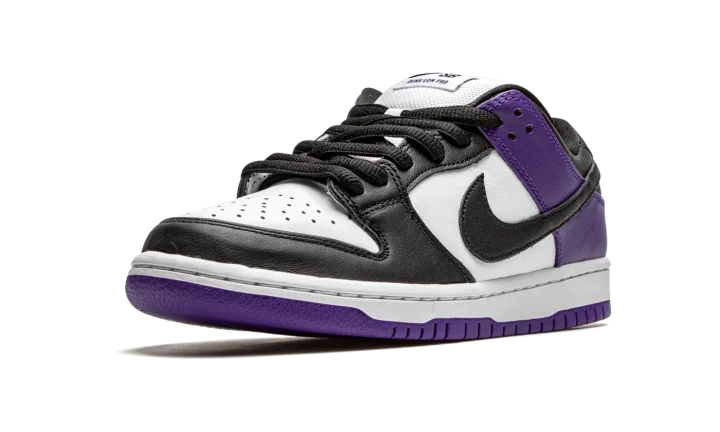 The Nike SB Dunk Low "Court Purple" is a skate shoe with a colorway inspired by an Air Jordan 1 of the same nickname. Nike SB released the "Court Purple" as part of its Spring 2021 collection. The design is one of several SB Dunks to reference popular Air Jordan 1 colorways over the years, joining the "J-Pack" and "Space Jam," among others, to make the Jordan-to-SB Dunk jump. Details include buttery black leather overlays on the forefoot, eyelets, collar, and heel that contrast the white leather base. A black leather Swoosh appears on the mid-panel and Court Purple leather can be found on the heel. Black "Nike" embroidery marks the back of the shoe. The SB Dunk's signature puffy tongue design appears on the "Court Purple" and provides the wearer with a cushioned ride for skateboarding. Additionally, the design of the outsole offers plenty in the way of grip for those who opt to skate the "Court Purple" SB Dunk Low.