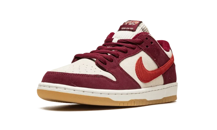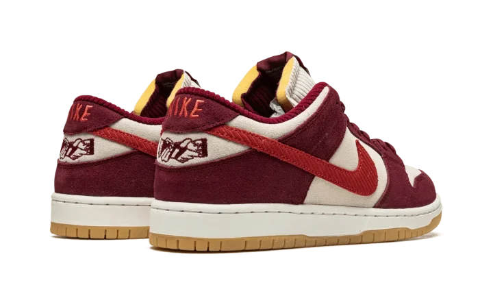 The Nike SB Dunk Low "Skate Like a Girl" is a special colorway of the venerable skate shoe co-created by the non-profit organization that empowers young women and trans people to promote equality in skateboarding. The "Skate Like a Girl" helps promote the organization of the same nickname's message on the popular SB Dunk shoe. A Summit White suede base is contrasted with Barely Rose-colored suede overlays on the shoe's upper. A University Red Swoosh with a diagonal motif appears on both sides. The cream corduroy tongue is complete with maroon-colored nylon tongue tag that features an inverted "Skate Like a Girl" and Swoosh branding. Exposed foam padding appears on the top of the tongue. A "Skate Like a Girl" "hand holding" detail is embroidered on the heel below modified "Nike" branding. Release date: October 18, 2022