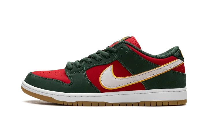 A vibrant homage to a classic, the Nike SB Dunk Low "Seattle Supersonics" (FZ1287 300) is a standout sneaker that celebrates the iconic 90s basketball team. This shoe takes the beloved Dunk silhouette and dresses it in the legendary Sonics' colors, making it a must-have for both sneakerheads and basketball fans.