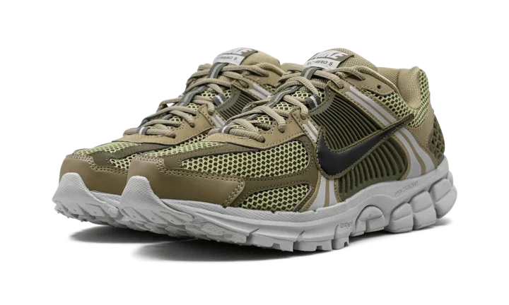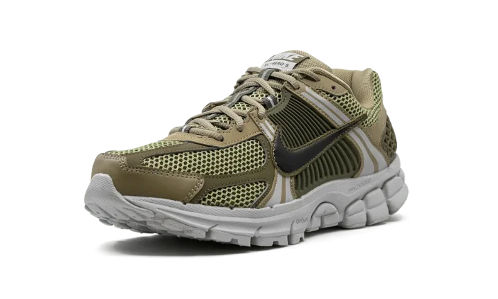 The Nike Zoom Vomero 5 "Neutral Olive" is a colorway of the retro performance running shoe with an earth tone color scheme for versatility. The Zoom Vomero 5 was first released in 2010 before later becoming part of the Y2K sneaker trend in late 2022 onwards. On the "Neutral Olive" colorway, the shoe features an olive green mesh upper and an olive plastic lace "cage" and heel counter that appear in shades of olive. A black leather Swoosh can be found on the sides, while "Nike Vomero 5" branding can be found on the tongue. Zoom Air cushioning within the Sail-colored foam midsole provides all-day comfort.