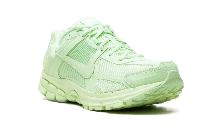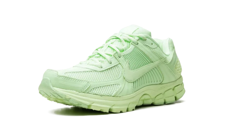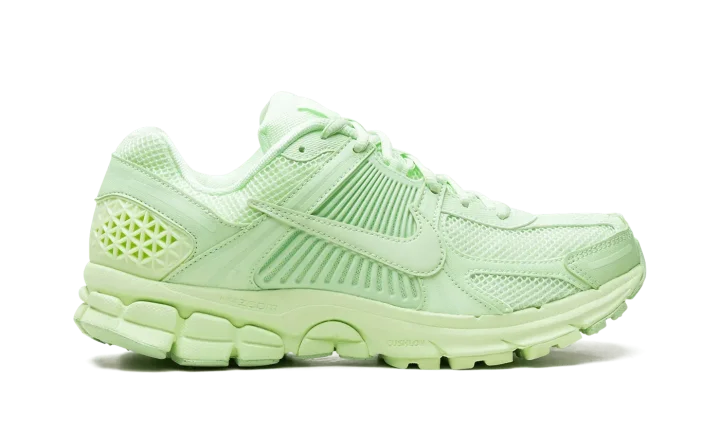 The Nike Zoom Vomero 5 "Pistachio" is a monochromatic pastel green colorway of the popular retro running shoe. The Nike Zoom Vomero 5 debuted in 2010 and was later part of the Y2K-style sneaker trend that began in late 2022. On the "Pistachio" colorway, the shoe features an all-Pistachio-colored appearance. The base is designed in Pistachio mesh to match the hue of the synthetic leather overlays. The "cage" on either side of the shoe that supports the lacing system also has a Pistachio finish, as does the Swoosh and "Nike Zoom Vomero 5" detailing on the tongue tag.