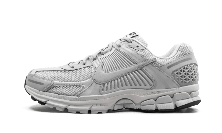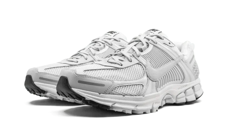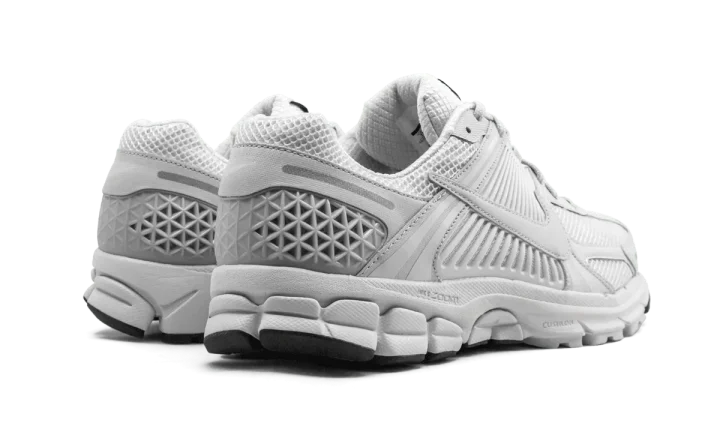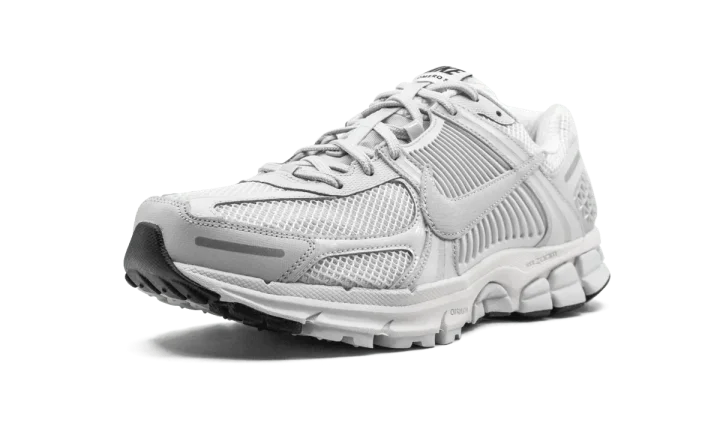 With the Nike Air Zoom Vomero 5 SP, it's all about breathable support. The running shoe is made with durable synthetic leather and lightweight mesh. Utilitarian overlays are cut and designed to increase the airflow in and out, while the rubber trim on the heel counter provides added support with its unique crisscross pattern. Soft foam and Zoom Air cushioning deliver a smooth ride, whether you're running, walking, commuting, or shopping. The low-top runner offers a versatile color theme of grey and white up top and black accenting on the rubber outsole underneath