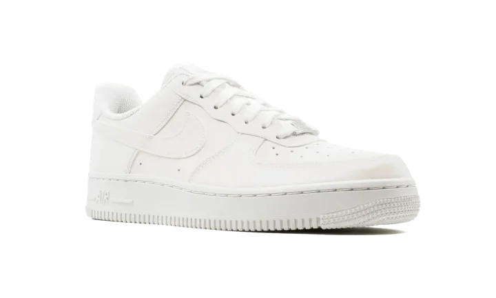 With the Nike Air Force 1 '07 "Reflective White," Nike truly outdoes itself in creating an entirely reflective upper on the women's-exclusive colorway. The refreshed design is seemingly simple at first glance with all of the makings of your typical Air Force 1 '07: crisp leather, bold details, and heritage style. The shoe pairs a pinkish-cream-toned, monochromatic upper with a stark white sole. Then things change: once light shines on the shoe, everything from the forefoot to the heel and Swoosh becomes entirely reflective.