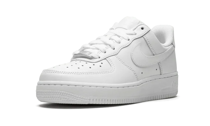 The Women's Nike Air Force 1 Low "White on White" is the women's sizing of the classic "Uptown" colorway. The all-white Air Force 1 Low is an essential footwear option for those looking for a versatile shoe that is always in style. Perfect for summer and beyond, the "White on White" makeup displays an all-white leather upper. Tonal Swoosh detailing can be found on either side. White embroidered "Nike Air" branding is stitched into the heel tab. Crisp white shoelaces sit on the white nylon tongue. A white "Nike Air" logo appears on the nylon tongue tab. Silver "AF1" hardware is located on the bottom of the shoelaces near the throat. This all-white-everything Women's Nike Air Force 1 Low features a white rubber sole to finish off the look.