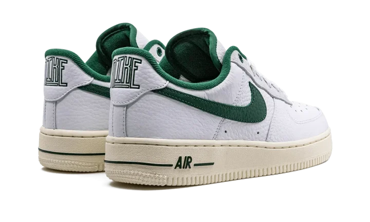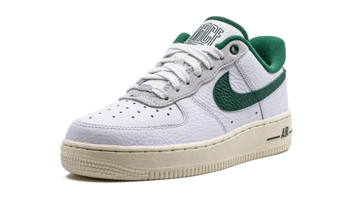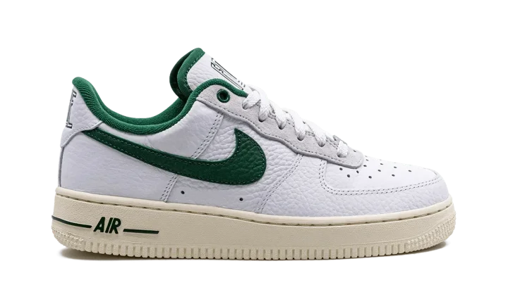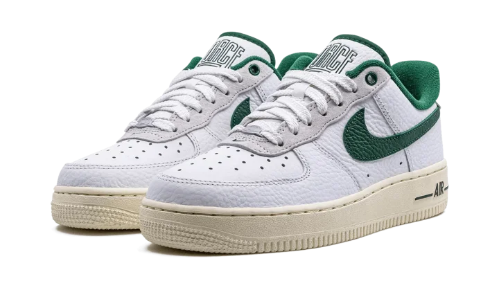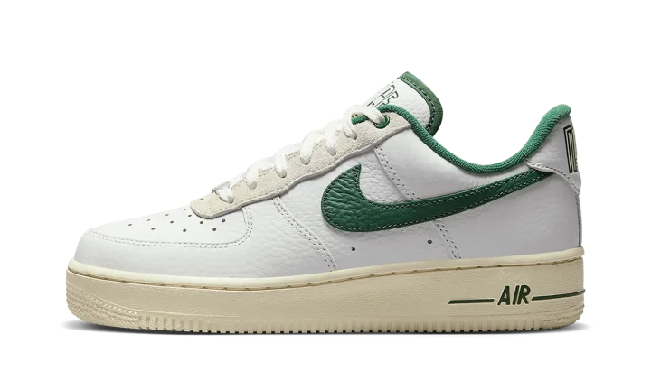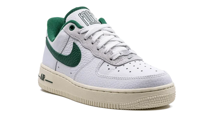 The Women's Nike Air Force 1 Low '07 LX Command Force "Gorge Green" is a women's-exclusive colorway of the popular sneaker that pays homage to the classic Nike Command Force basketball shoe. Originally released in 1991, the Command Force is a retro hoops model that inspires the look of the Air Force 1 Low seen here. The colorway features a white leather upper with Gorge Green leather on the Swoosh, inner lining, and on the underside of the tongue. The green hue also appears on the Command Force-inspired branding on the "Force" logo on the tongue and on the "Nike" hit on the heel tab. Underfoot, the shoe retains the Air Force 1's standard sole unit, this time painted in a cream shade for an aged look.
