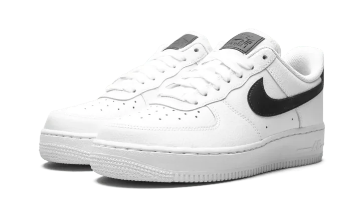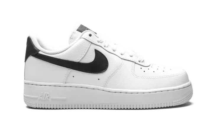 White/black/white leather Air Force 1 '07 sneakers from NIKE featuring signature Swoosh logo detail, pebbled texture, panelled design, perforated, logo patch at the tongue, round toe, front lace-up fastening and signature Air cushioning. These styles are supplied by a premium sneaker marketplace. Stocking only the most sought-after footwear, they source and curate some of the most hard to find sneakers from around the world..