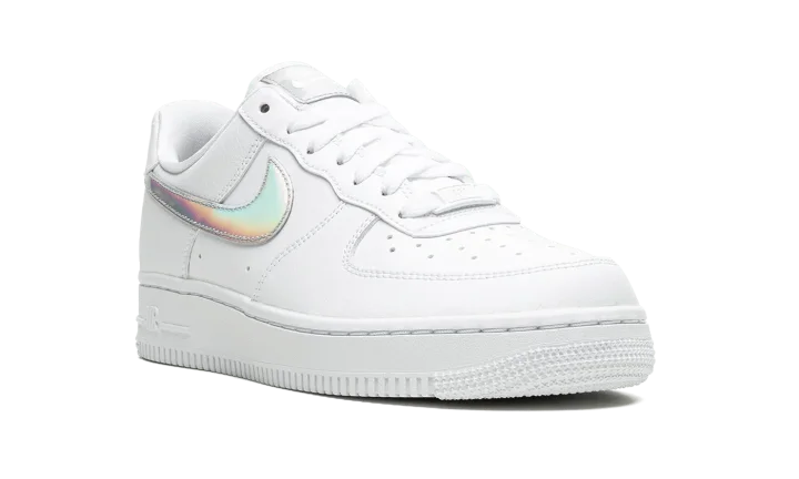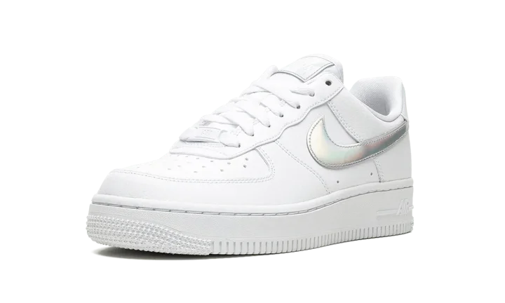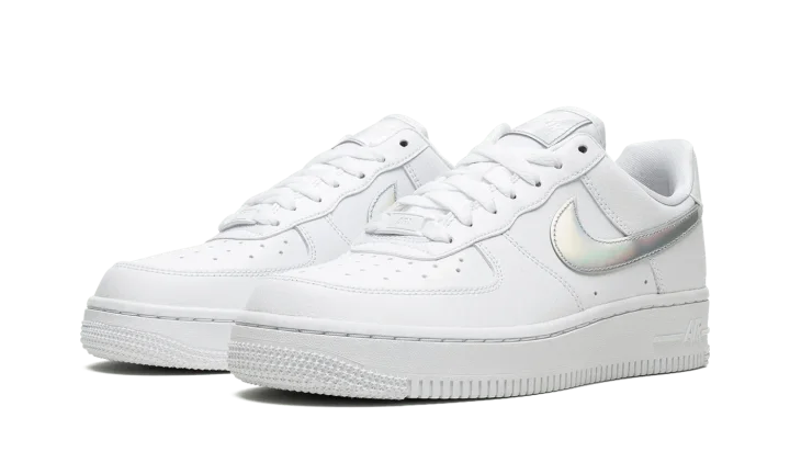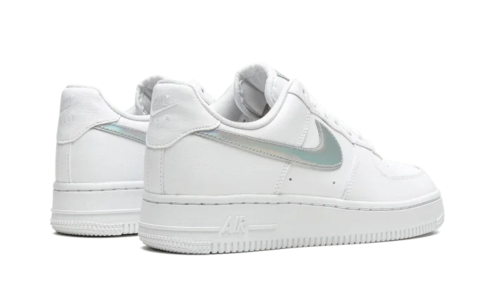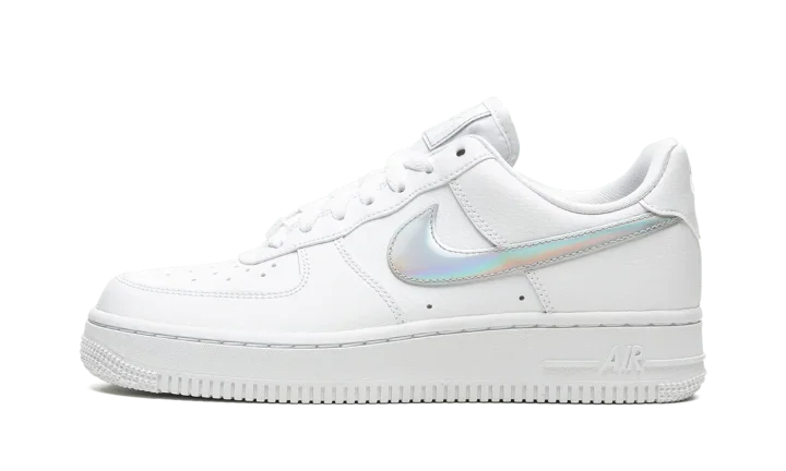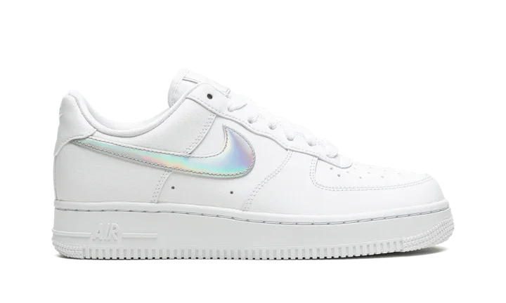 The Women's Nike Air Force 1 Low "Iridescent" is a brand new look for the classic silhouette that highlights the model's timeless style and versatility. Fitted in women's sizing, this "Uptown" uses the familiar "White on White" colorway as a base design that allows for the subtle accenting to make a bold statement. The white leather upper is complemented by a shiny iridescent Swoosh on each side and a "Nike Air" insignia on the tongue tab. Monochromatic "AF1" branding is located on the lace tag and tonal "Air" detailing can be found on the white rubber midsole to finish off the look.